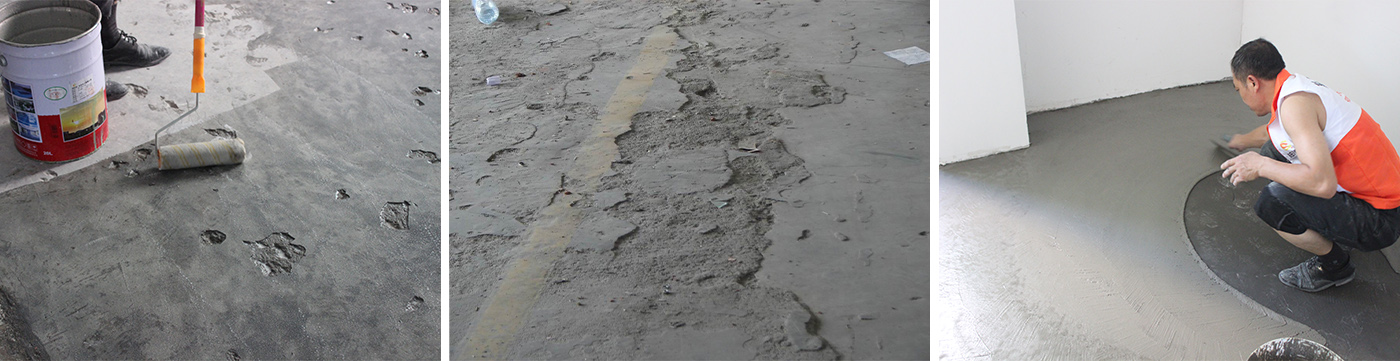 甲乙組按比例混合(3:1)充分?jǐn)嚢?,乳?-5分鐘后,加混合后總量15%的水(即甲組份的20%)攪拌后均勻輥涂在地面上。