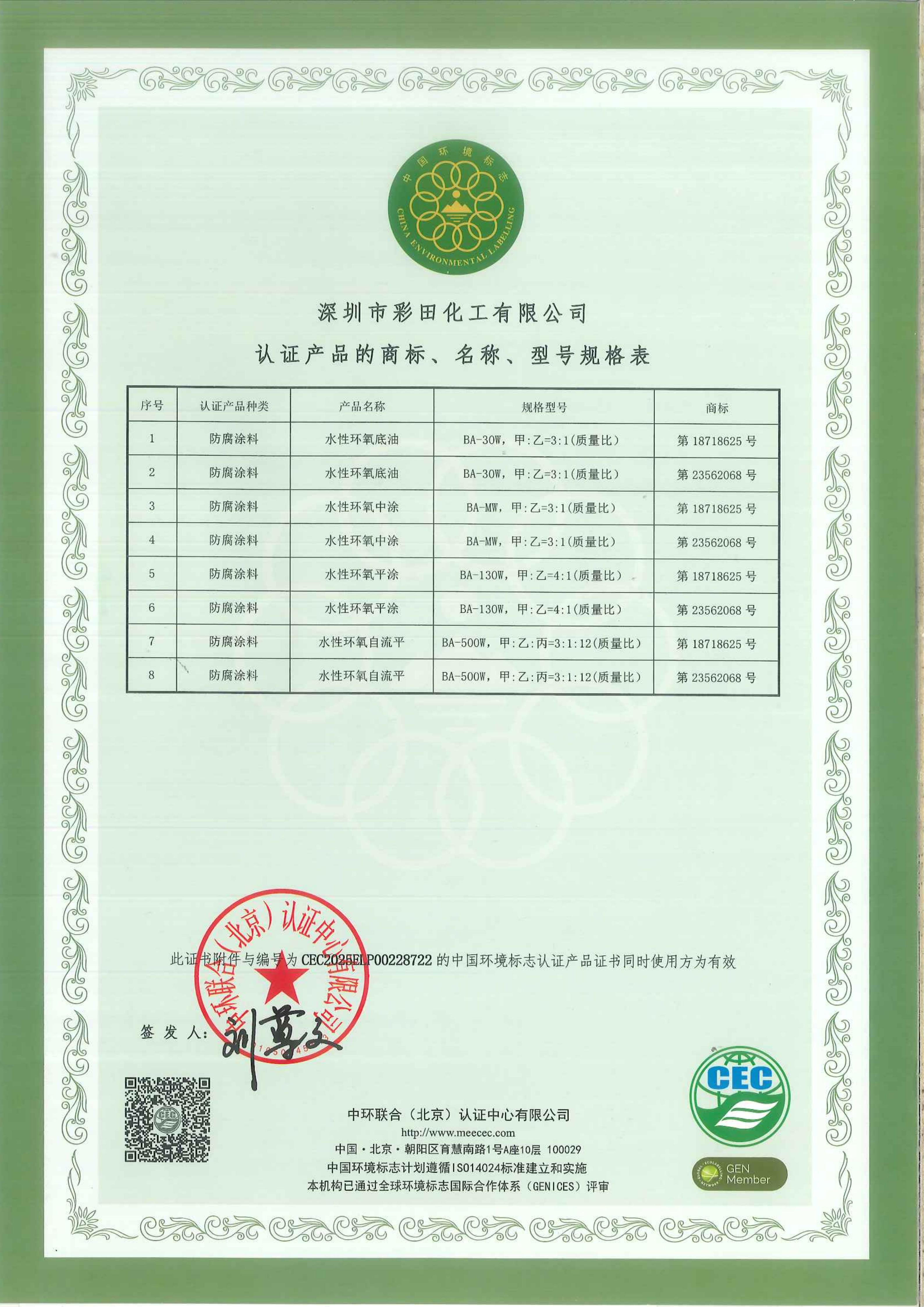 十環(huán)認(rèn)證要求彩田從原材料選購(gòu)、生產(chǎn)工藝到廢棄物處理全鏈條符合環(huán)保標(biāo)準(zhǔn)。