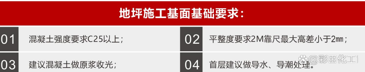 在進(jìn)行施工時(shí),水泥地面基層要預(yù)處理好,如水泥地面翻沙、空鼓、非同批次 澆筑地面的接縫、地面布線開槽形成的接縫以及一樓返潮,對(duì)于需要施工單位現(xiàn)澆筑的 地面(尤其在一樓),建議在進(jìn)場(chǎng)施工前澆筑地面并找平(因?yàn)樗嗌皾{地面含水量大,一層采光本身較差,因此必須要地面充分干透才能進(jìn)行施工否側(cè)會(huì)出現(xiàn)面層返水和龜裂。)